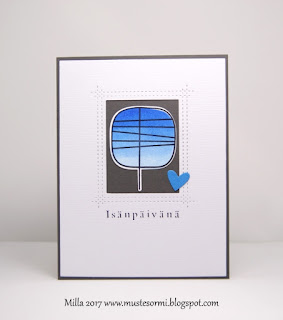 It's Father's Day in Finland today and I made this card for my Dad. My Dad loves nature and the trees so I chose to use this gorgeous modern tree by Simon Says Stamp (it's from the 'One with Nature' set). I stamped it with Hero Arts ombre ink before die cutting it. I die cut the window with a My Favorite Things die and the little heart with a Lawn Fawn die. The sentiment says 'On Father's Day' in Finnish.