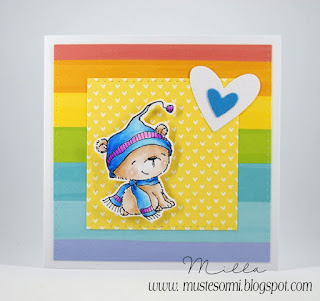 Tein elämäni pienille miehille ystävänpäiväkortit Purple Onion Designsin leimoilla. Ensimmäiseen käytin Icicle-nallukkaa ja toiseen Lilly-pöllöä, molemmat väritin Zigeillä. Taustalle värikkäitä kuviopapereita ja koristeiksi Lawn Fawnin stanssilla stanssattuja sydämiä.